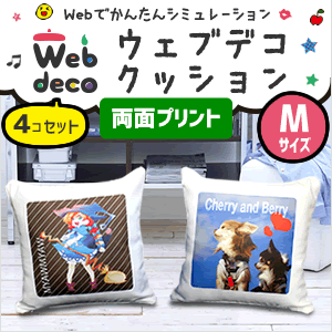 Web deco クッション【M】【両面】【カバーのみ】【4個セット】 ウェブデコ ギフト プレゼント 名入れ オーダーメイド (ネコポス可)フォトクッション おしゃれ 写真プリント 写真入りグッズ オリジナル かわいい ギフト ペット 記念品 敬老の日 誕生日出産祝い